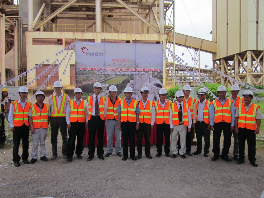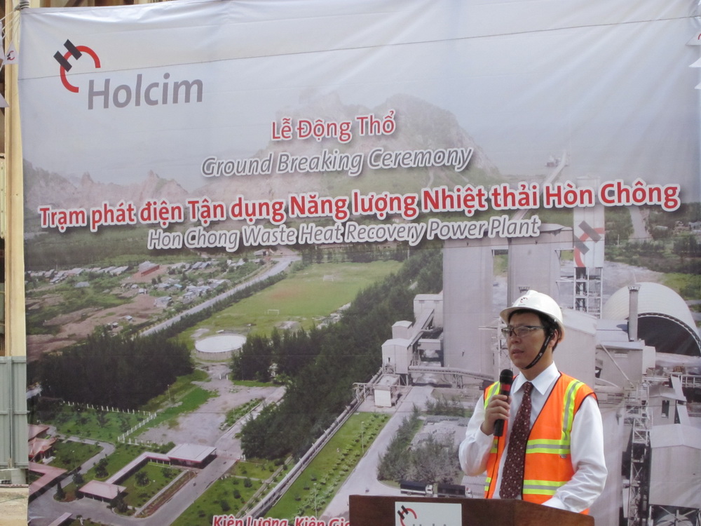 On 26th May, 2011, the EPC WHR project of Holcim Vietnam undertaken by Sinoma Energy conservation Ltd. held a groundbreaking ceremony in Hon Chong county, Kien Giang province, Vietnam. Mr. Nguy?n Tr?n Nam, the governor of Kien Giang province , Mr.Francois Goulut, the technical director of Vietnam Holcim, and Mr. Aridavid Lozano , the director of cement plant, together with Mr. Hu Yeming , the president of Sinoma-EC starts the button, which was once again cooperation with Holcim group afterwards Thailand SCCC 1000 t/d project.