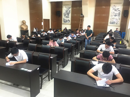 圖為考試現場 為杜絕考場舞弊行為,保證考試過程的嚴肅公平,現場筆試首次啟用監控設備,考場均“現場直播”實時錄像。考試過程組織嚴密,工作有序,考場紀律嚴明,公司副總經理董阿林到現場檢查考卷密封情況,親自監督考風考紀。 公司人力資源部、監察室與征費管理部負責人全程參與監考。 陳一沁