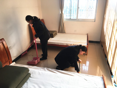圖為打掃衛生現場 在為期一個月的“文明寢室”評比活動中,考評小組通過四次突擊檢查,發現各寢室內務衛生整體水平顯著提升,基本做到了勤開窗通風,勤做大掃除,被褥疊放整齊,地面、桌面干凈整潔,門框、柜頂一塵不染。通過評比,大家講衛生,爭做“文明人”的熱情度極大地提高,同時在評比中積極查漏補缺,改正不足。 最后經評比,李菊麗、葉懿慧、吳琴琴、徐海源被評為“文明個人”,其所在寢室被評為“文明寢室”。 陳瑩