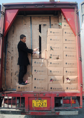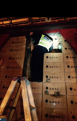 這輛從溫州南入口、車門上印著“蔬果特快”軸限40噸的115型大貨車,在凌晨2:25分駛入臺州收費所,司機自稱運送蘋果。當檢查人員打開車廂后門,搬開疊放著兩層的蘋果箱后,發現廂體另有天地,一個用鐵條焊成的架子沿著廂壁固定在廂體內部,架子上豎著兩大片木板,木板遮擋了廂體六分之五的面積,透過木板縫隙能看到里面一箱箱的貨物。檢查人員把手伸進包裝箱里,拆開一看,里面全是電動車的配件。