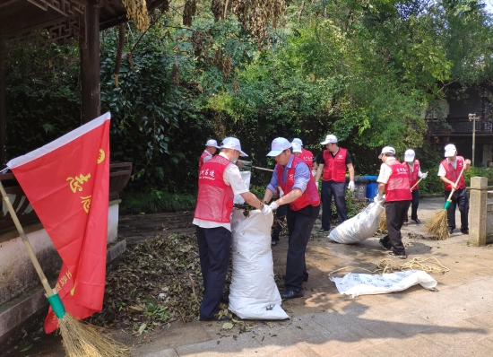 815日上午,臺州收費所黨支部組織黨、團員青年志愿者共15人,助力黃巖區九峰公園臺風后清理工作。