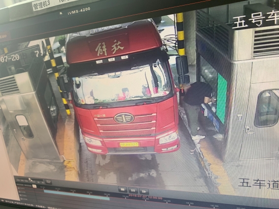圖為失主遺落錢財現(xiàn)場 當(dāng)天上午,收費(fèi)班長李寧巡查時在第五車道窗口附近發(fā)現(xiàn)了三百元現(xiàn)金,經(jīng)多方確定不是所內(nèi)工作人員遺失后,判斷為過往司機(jī)不小心遺失。為了盡快找到失主,李寧隨即去監(jiān)控室調(diào)取視頻查找。 經(jīng)過監(jiān)控查找,馬上鎖定了一輛車牌為“豫”字開頭的大貨車。原來當(dāng)時因駕駛室距離窗口較遠(yuǎn),司機(jī)下車付錢,監(jiān)控中清晰顯示司機(jī)在掏錢繳費(fèi)時三百塊現(xiàn)金從口袋里掉到車道上,但是司機(jī)因為趕路絲毫沒有發(fā)覺。確認(rèn)失主后,工作人員查詢司機(jī)電話并取得聯(lián)系,告知其遺失三百現(xiàn)金,在通過微信確認(rèn)身份后,李寧將錢轉(zhuǎn)給了司機(jī)。