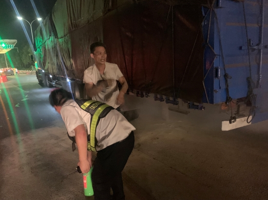 貨車起火,收費員齊力撲滅 |