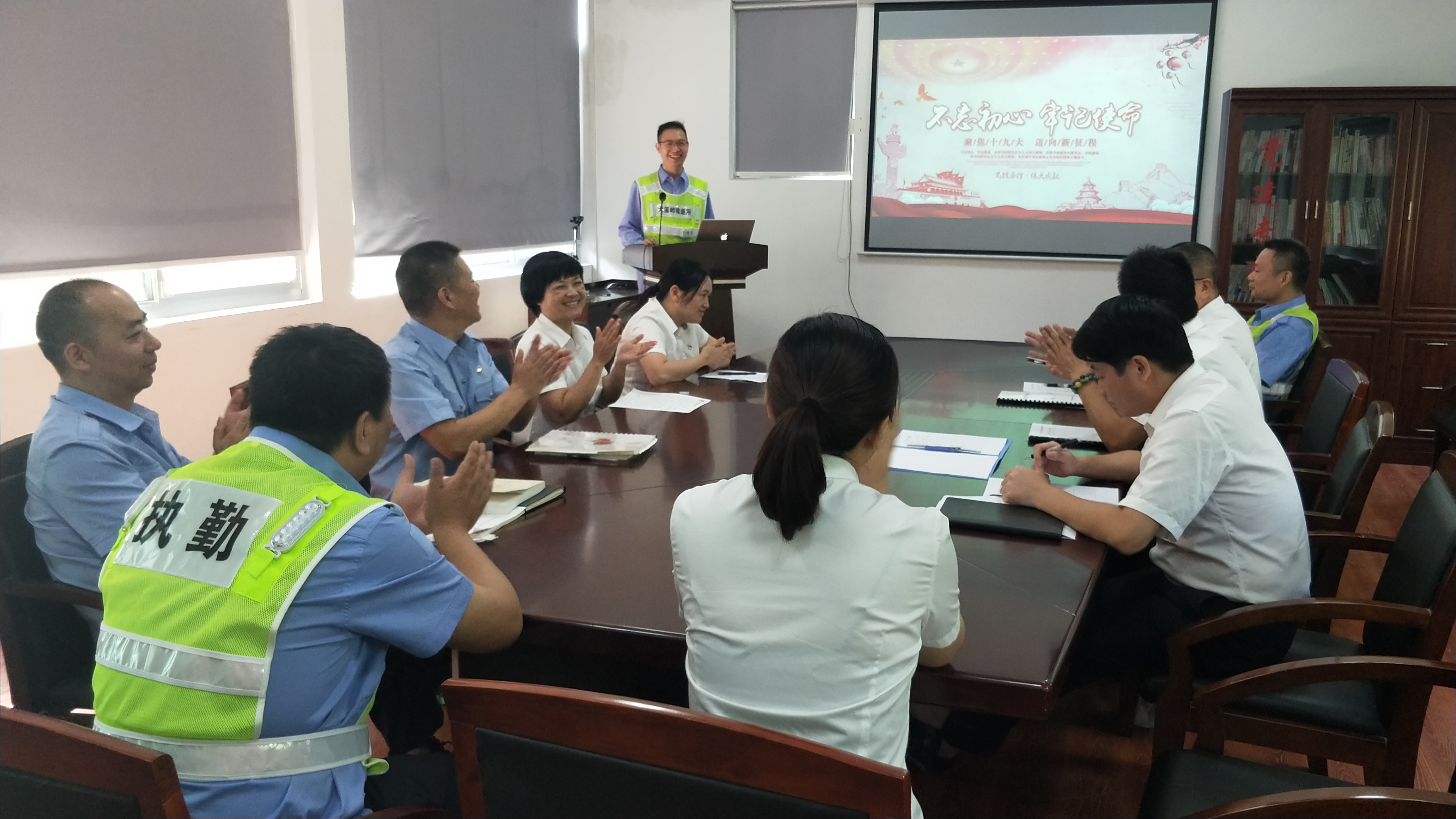 圖為演講賽現(xiàn)場 此次演講由隧道所黨員、執(zhí)勤隊業(yè)務(wù)骨干參加,演講比賽過程中,參賽的七位選手緊緊圍繞“不忘初心,牢記使命”這一主題,結(jié)合各自的本職工作,立足崗位實際,從不同角度、不同層面,說身邊的人、講身邊的事。有執(zhí)勤隊長對隧道安全責任的解讀,機電人員對隧道設(shè)備維護的擔當,中控員對隧道24小時堅守的承諾,安保人員對隧道消防安全的認知,還有行政人員對奉獻的感慨,演講者們談感想、抒情懷、表決心,為大家分享了各自對初心和使命的認識,從內(nèi)心抒發(fā)了對中國共產(chǎn)黨、偉大祖國無限敬意和熱愛之情。他們用包含深情,富有感染力的演繹,使全場觀眾深深地感受到他們強烈的愛國熱情。