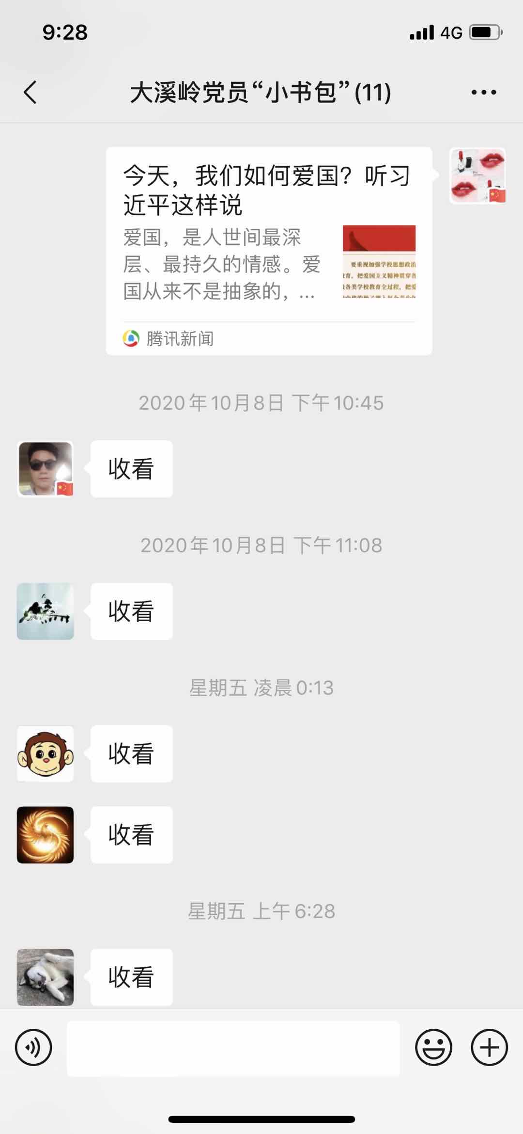 黨員“小書包”的建立,進一步拓展和暢通了聯系黨員的信息渠道,可以24小時在線聯系黨員、征求意見,能在線進行實時回復和互動,同時可以通過微信群及時發布上級文件精神、習近平總書記重要講話內容、學習教育心得、會議通知等等,進一步提高學習教育效能。 黨員“小書包”的建立,讓黨員們的學習內容不受書本限制,學習教育不受地域、場所的限制,在繁忙的工作學習之余,大家可以在微信群中了解當前時下最新的學習內容、信息和動態,相互學習,交流體會,無形提升自己的政治素養。 黨員“小書包”的建立,實現了黨組織和黨員之間“親密”、“即時”、“微距”的接觸,加強了黨員同黨組織之間的信息互動。通過“小書包”的建設,大溪嶺學習教育時刻保持鮮活的生命活力和時代氣息,形成了“輕松自主學習、實時互動交流”的良好學習氛圍,提供了更好的動力。