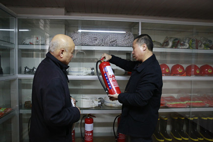 鑒于天臺縣足馨堂足浴中心2月5日發生的重大火災事故,2月6日一早,公司副總經理董阿林即刻組織安保部、辦公室相關人員對大樓進行消防安全大檢查。 “你們要多注意用電安全,及時清理生活區內的易燃物品至倉庫。”董阿林在檢查五樓食堂區域時對工作人員指出。