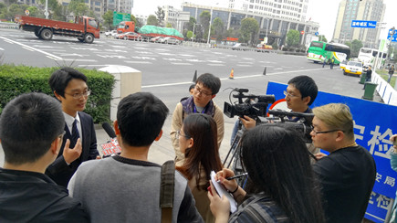 圖為記者在收費站附近采訪當晚征費四班值班班長鄭星 “那天晚上,原本只開1號、3號、4號三個車道的,因為該駕駛員鬧事,為保證通行秩序,收費站后來先后加開2號、5號車道。”在那晚值班的征費四班班長鄭星告訴大家。駕駛員對免通行政策、免通行時間段還存在誤解的情況,之前收費站也存在過駕駛員拒付通行費的現(xiàn)象,但沒有像此次拒付時間長、影響又惡劣的。