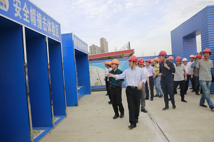 臺州基投集團公司總經理王輝帶領大家參觀了安全生產體驗區和浙江大學臺州研究院(臺州科技城綜合區)項目建設現場,介紹了公司的發展狀況、“五新”發展經驗,企業文化理念、愿景和核心價值觀,以及工程管理工作經驗。