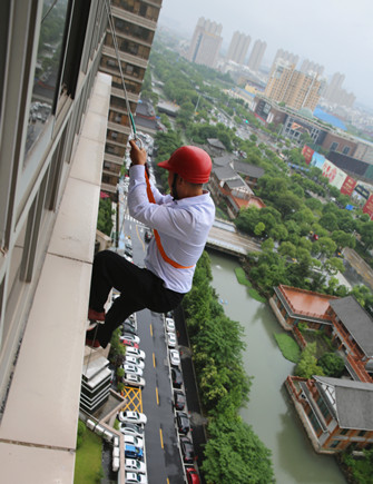 上圖為高空墜落逃生演練現(xiàn)場(chǎng)