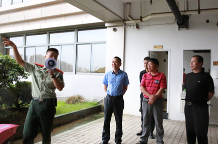 圖為公司總經(jīng)理張建平到現(xiàn)場(chǎng)觀摩演練、聽專業(yè)安全消防員演練點(diǎn)評(píng)