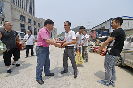 圖為公司副總經理董阿林給高速交警送上消暑品