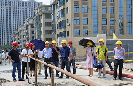 圖為集團副董事長、總經(jīng)理張建平在文鼎苑項目工地了解工程進度情況 在文鼎苑銷售展廳,當(dāng)聽到首期房源已售罄的好消息時,張建平很是高興。在樓盤沙盤前,他認真聽取了高速房產(chǎn)(集團)公司負責(zé)人關(guān)于文鼎苑項目的整體思路、目前銷售進展,以及下一步的銷售計劃匯報。他對前期房產(chǎn)公司的工作給予充分肯定,對首期銷售的形勢感到欣慰,同時鼓勵大家再接再厲、乘勢而上做好后續(xù)銷售工作。 在結(jié)束了銷售展廳的行程之后,張建平又來到文鼎苑項目工地了解工程進度情況。在施工現(xiàn)場,他仔細詢問施工方負責(zé)人目前工程的進度以及面臨的困難,要求施工方要全力配合好整個項目的銷售進展,加快工程進度,保證施工安全,確保工程質(zhì)量。 包啟曉