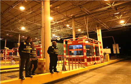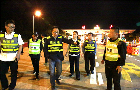 5月4日傍晚,集團(tuán)副總經(jīng)理章海峰帶領(lǐng)征費(fèi)部人員提前趕往臺(tái)州收費(fèi)所和臨海南收費(fèi)所檢查分流備戰(zhàn)情況。