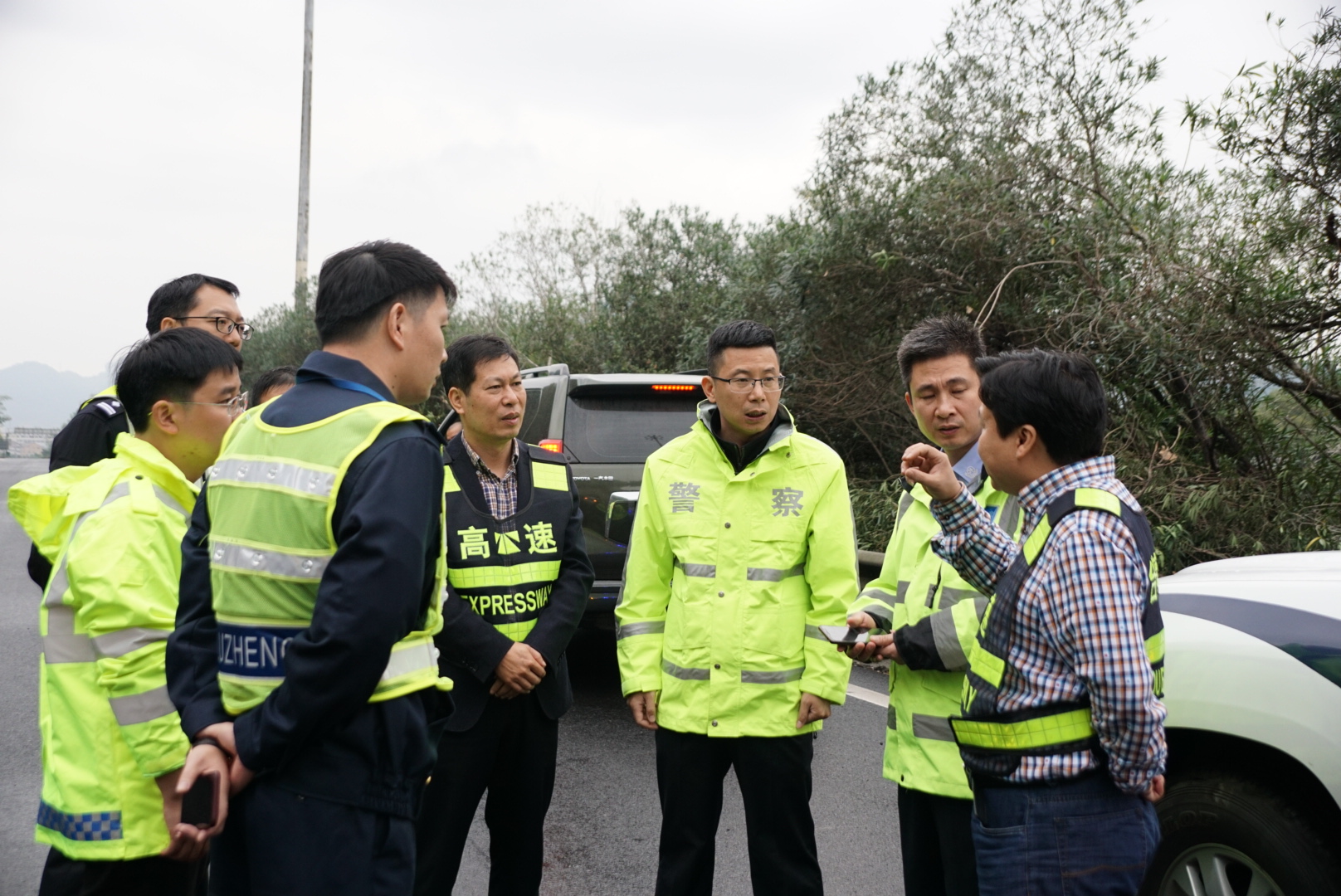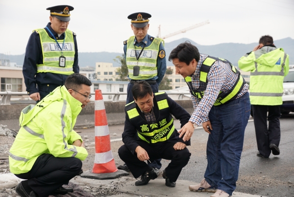 集團(tuán)聯(lián)合高速交警、路政檢查第一階段斷流施工情況 11月7日上午,集團(tuán)聯(lián)合高速交警、高速路政等單位實地踏勘了集團(tuán)沿線斷流施工現(xiàn)場,檢查第一階段施工進(jìn)展情況及現(xiàn)場交通管控點、收費站分流點交通流等情況,集團(tuán)總工程師江輝、高速交警臺州支隊副支隊長沈汝寬、高速路政領(lǐng)導(dǎo)參加檢查。