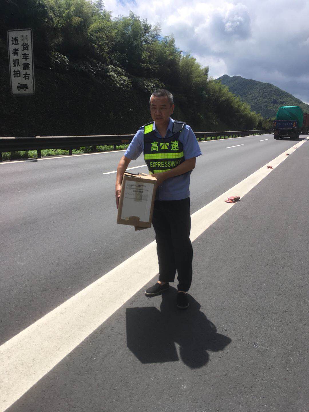 圖為執(zhí)勤隊員搬走掉落在高速車道上的快件 “可是如何歸還快件呢?快遞小哥再來取,還是寄回?” 執(zhí)勤隊員與物流公司負責(zé)人商量著。由于隧道所地處特殊位置,讓快遞小哥來隧道所領(lǐng)取肯定不方便,大家便提出將快件帶回臨海,再聯(lián)系順豐公司直接將快件寄給收件人。然而因紙箱掉落地面受過摩擦,使得快遞單破損且上面字跡變得模糊,一時無法確定相應(yīng)收貨人聯(lián)系方式。 “沒有上面的信息,物流公司怎么在堆積如山的快件中查詢到這份快件的信息呢?”執(zhí)勤隊員有點犯難了,他們告知物流公司物件重量,掉落地段,掉落的大致時間,并描述快件的外觀等依稀模糊的可辨特征,一次次不厭其煩的與物流公司溝通,終于根據(jù)模糊不清的外包裝相關(guān)信息確認了收件人的聯(lián)系方式。 物流公司在收到寄出快件的運單號時向執(zhí)勤隊員連聲道謝:“這快件里面是汽車配件,很多是不容易配齊的專有型號,多虧了執(zhí)勤隊拾得并歸還包裹,要不然丟失客戶單子賠錢挨訓(xùn)是小,影響公司名譽就麻煩了。”隊長叮囑對方下次運送快遞時一定要放好物品,并注意安全。 毛譯聆