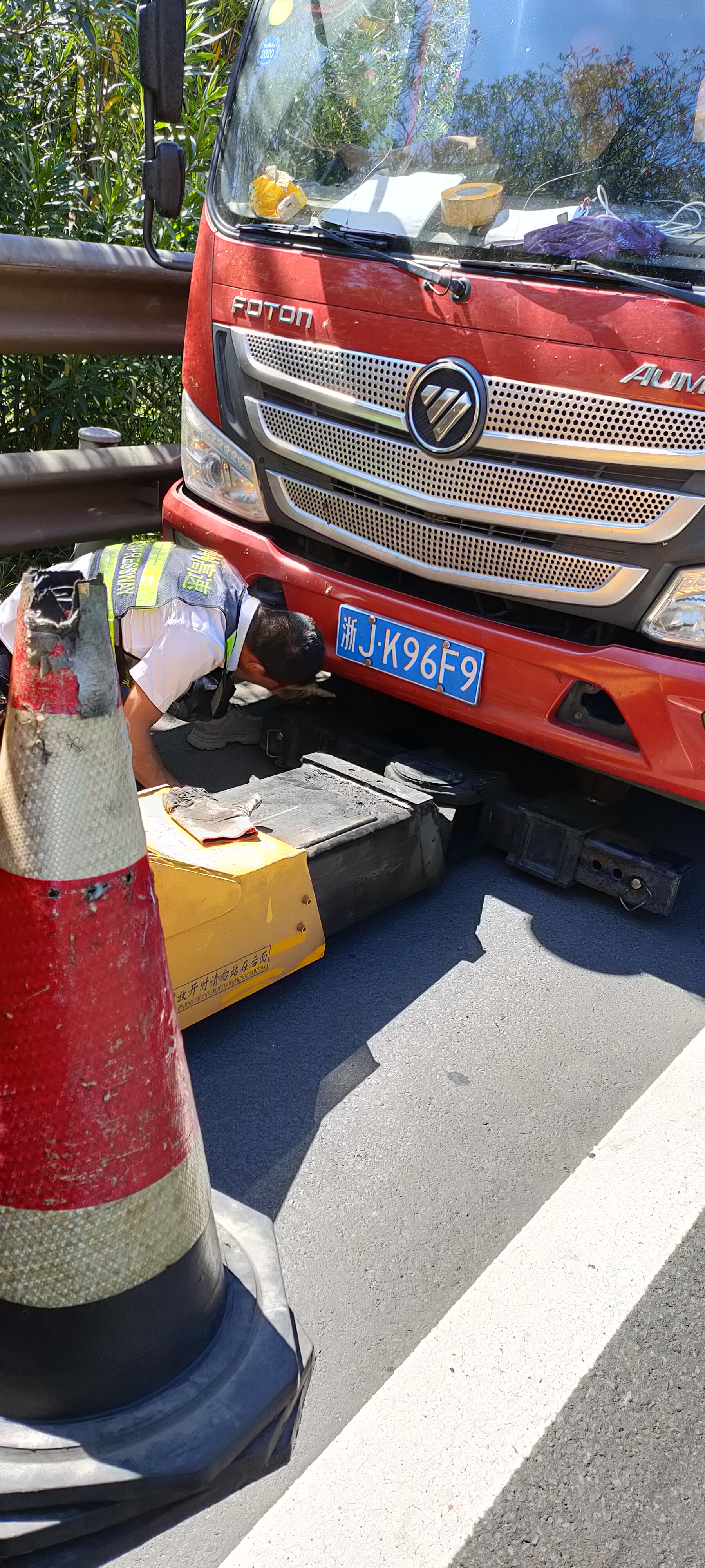 當班的是駕駛員阮文標和輔查員王順益,而此前兩人已經真切地感受到高溫的可怕。9點40時,有一輛小貨車拋錨在甬臺溫高速寧向距離大溪所不到三公里的地方。兩人到達救援現場最直觀的感受就是無法呼吸。