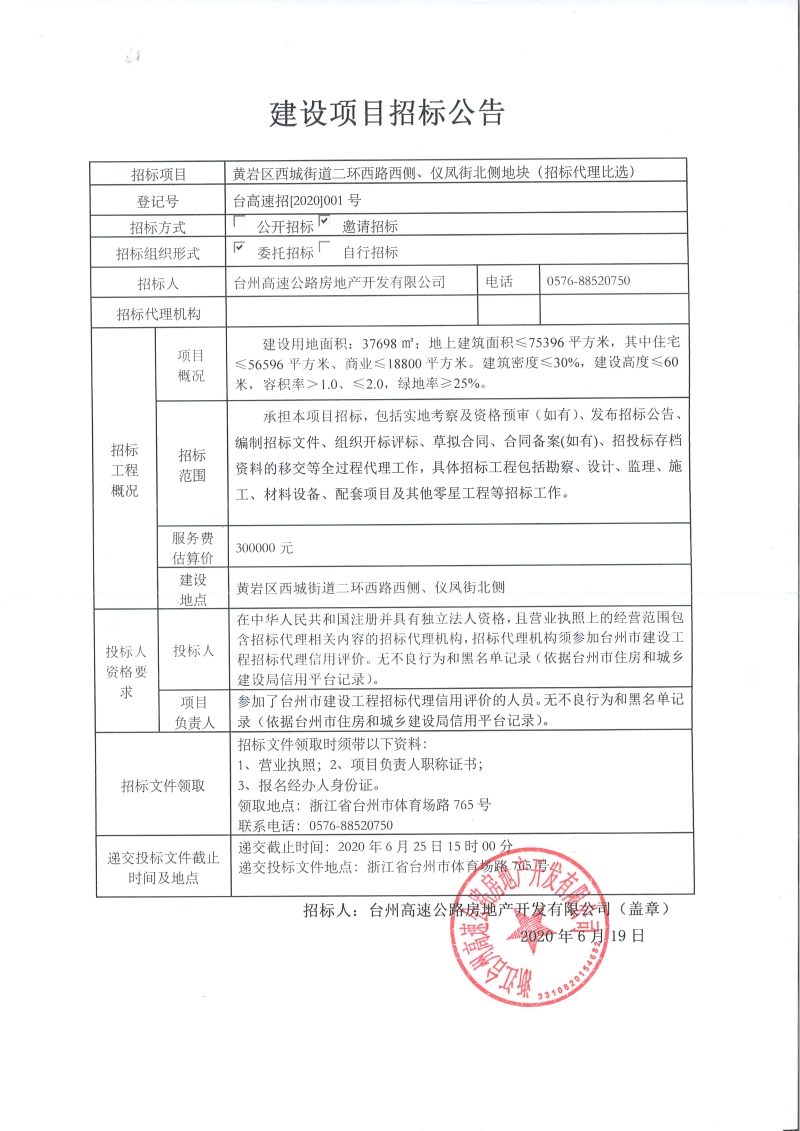 黃巖區西城街道二環西路西側、儀鳳街北側地塊(招標代理比選)招標公告