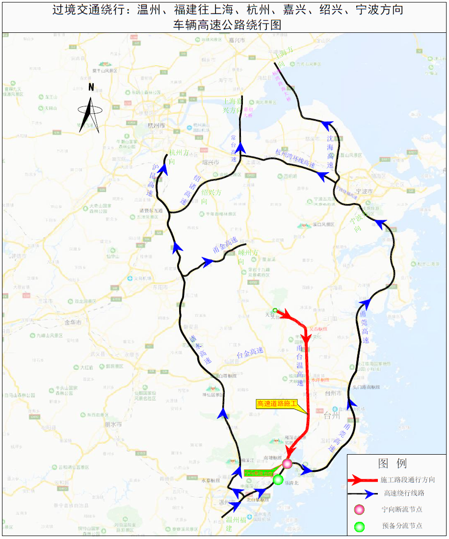 受本次施工影響,福建、溫州、臺(tái)州往寧波、杭州、上海等方向的車(chē)輛需要提前選擇出行時(shí)間和繞行路線。具體繞行線路建議如下:
