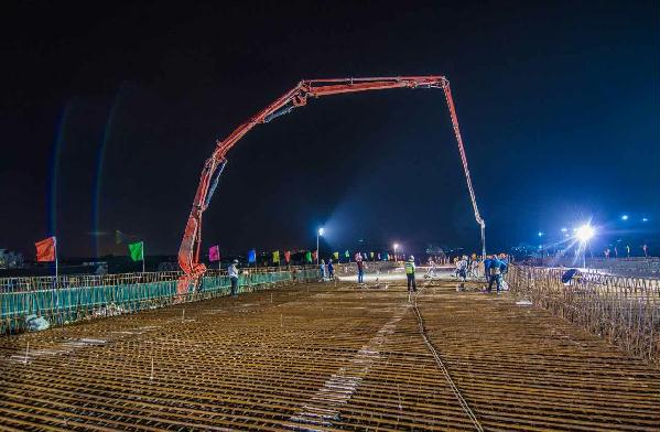圖為4月21日凌晨,內(nèi)環(huán)路8#立交第二聯(lián)箱梁頂板澆筑場(chǎng)景。鐘 彪攝 8#立交工程位于黃巖區(qū)紅三村和紅四村,主線橋8#立交全長(zhǎng)1300多米,是臺(tái)州市首座全互通四層立交。東接九峰公園,西臨黃巖主城區(qū),上跨二環(huán)東路,南北連104國(guó)道,作為內(nèi)環(huán)路唯一一個(gè)位于城鄉(xiāng)接合部關(guān)鍵節(jié)點(diǎn),復(fù)雜的施工環(huán)境,繁瑣的交通組織,給工程的正常推進(jìn)帶來(lái)了嚴(yán)峻的考驗(yàn)?!拔覀?nèi)w參建人員根據(jù)現(xiàn)場(chǎng)情況不斷優(yōu)化方案,細(xì)化措施,狠抓落實(shí),連續(xù)作戰(zhàn),保證每月完成既定任務(wù)指標(biāo)。”8#立交項(xiàng)目現(xiàn)場(chǎng)負(fù)責(zé)人金小琳表示。 目前,8#立交主線橋梁順利貫通,離11月11日主線通車的目標(biāo)又邁進(jìn)了一大步。據(jù)臺(tái)州高速市政建設(shè)投資有限公司副總經(jīng)理何翔介紹,接下來(lái)的工作重心是在主體結(jié)構(gòu)完工的基礎(chǔ)上抓緊匝道及附屬構(gòu)筑物的施工,爭(zhēng)取讓臺(tái)州市民能盡早用上這條民心路。 (本文轉(zhuǎn)自《臺(tái)州日?qǐng)?bào)》2017年4月22日第01版) http://paper.taizhou.com.cn/tzrb/html/2017-04/22/content_794805.htmfrom=groupmessage&isappinstalled=1