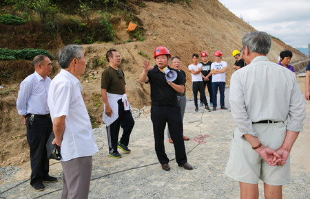 圖為在6#立交上了解工程建設情況 老干部一行實地踏勘了內環路(黃巖段)各施工現場,全面了解了四個標段工程當前建設情況。一路上,老干部們一面聽取各標段工作匯報,一面用手機相機記錄現場當前建設情況,當知道今年11月11日內環路將實現主線通車時,老干部們紛紛豎起大拇指,為內環路建設的進度和質量點贊,同時表示將多走多看,為內環建設盡自己的一份力。 鐘彪對老干部們的關心和支持表示衷心感謝,并希望各位老干部多指導、多監督、多提寶貴意見,助力臺州城市建設趕超發展。 張琛